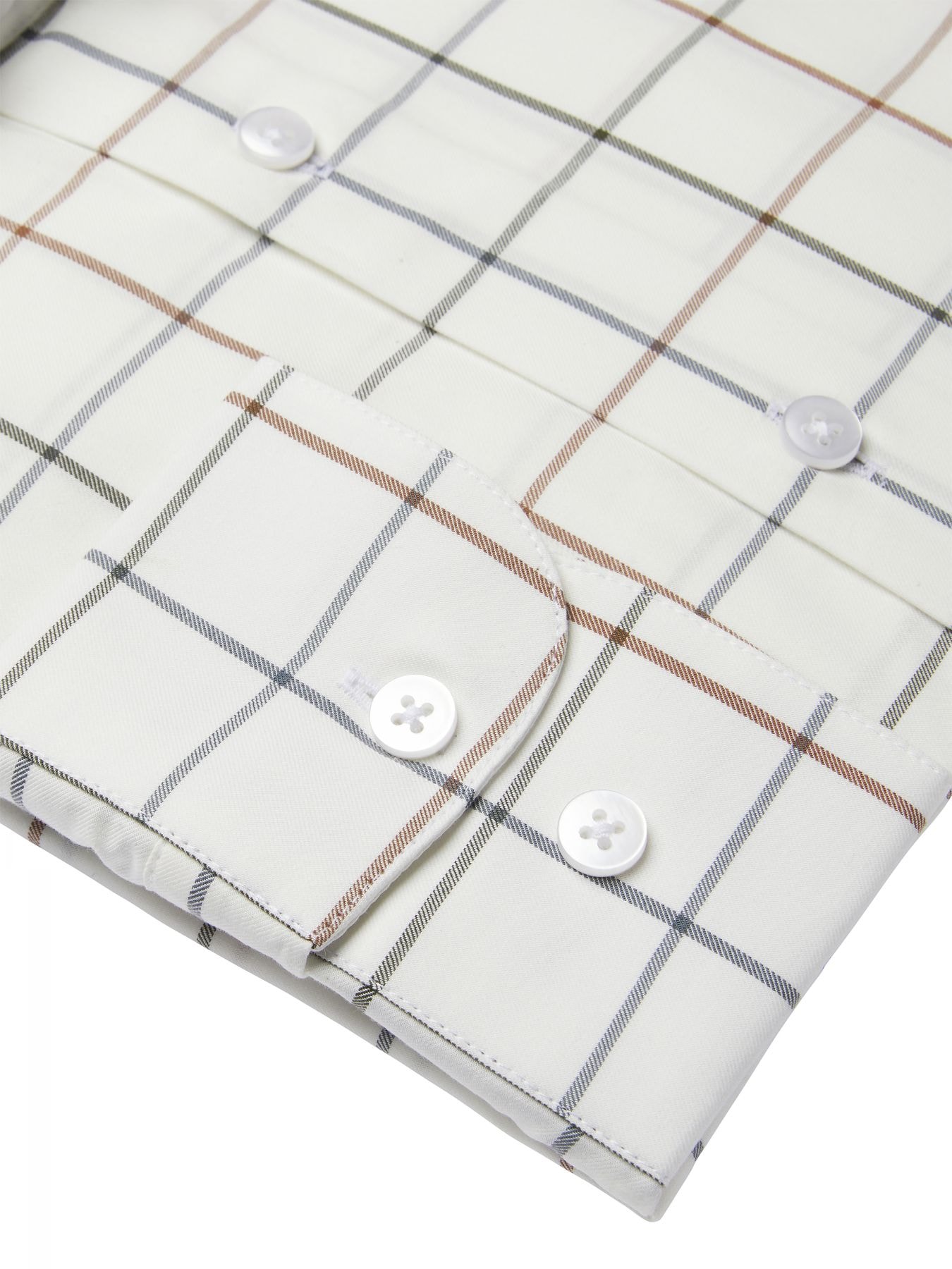 The Rossway Contemporary Fit Shirt is a men’s shirt with a classic check pattern. The shirt is made from a twill fabric largely consisting of organic cotton. The fabric is mercerized, giving the colors a better depth and the fabric extra luster and softness. This men’s shirt has quite a straight fit, slightly tapered at the back for a cleaner silhouette when worn under a pullover. The Rossway has a button-under collar, keeping it in place even when the shirt is unbuttoned. A stylish cut, well-tailored and with imitation mother-of-pearl buttons.